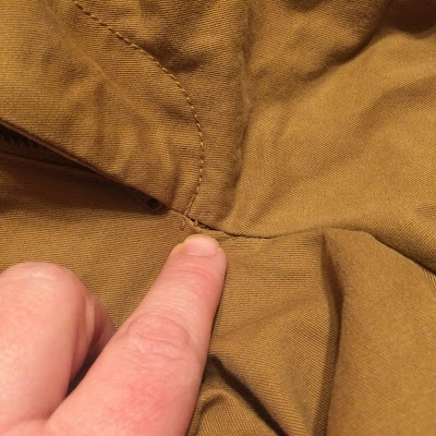 If I understand the problem correctly, this nearly new pair of work pants lost the seam under the zipper. The pants could be returned, but it's so much less work to have Mom mend them.